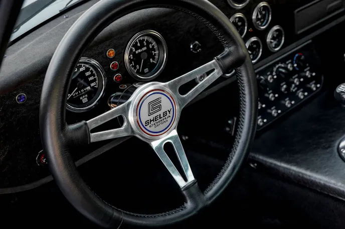 “We focused on making the car comfortable for long drives, from the interior to the suspension to the brakes,” Stander said. “Each Championship edition car includes Peter Brock’s signature on the glovebox, along with a commemorative Carroll Shelby autograph. Hard surfaces are swathed in buttery soft leather and Alcantara. The anniversary logo is on the custom gauges and embroidered on the seats. With only six chassis remaining and available this year, these cars are very rare and desirable.”