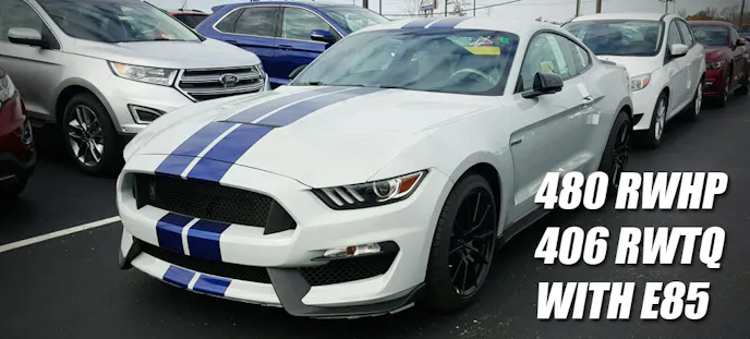 Studying the dyno graphs you can see exactly what Lund is talking about, for around town cruising and even rolling into the throttle say on the interstate, the improvements in the lower RPM range will make the most noticeable difference to most GT350 owners. At around 3,500 rpm the engine is making around 40 more horsepower and nearly 80 lb-ft of torque more on E85 that it was at the same RPM with the stock OEM calibration on 93 octane. This is also valuable for those looking to run the GT350 through the corners on a track or autocross, since having some improved grunt down low means less shifting to keep the car in its sweet-spot and faster exits off the corners.