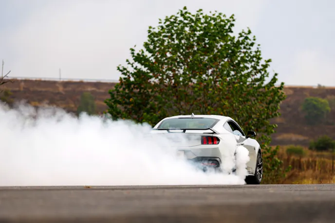 With a flick of the steering wheel and a yank of the parking brake handle, the pony car is slideways. The tail hangs out as a trail of smoke follows the stallion as it attacks the next corner. From a distance, you can tell the car is capable, but the exhaust sound mixed with the squealing tires tells you this is no dedicated drifter or mega-powered V8 monster. Instead, it’s a precision-balanced factory funhaver that is headed to a dealer lot near you.