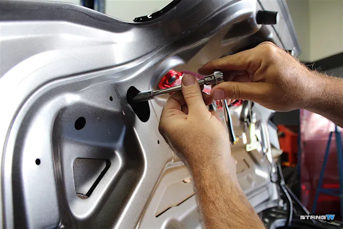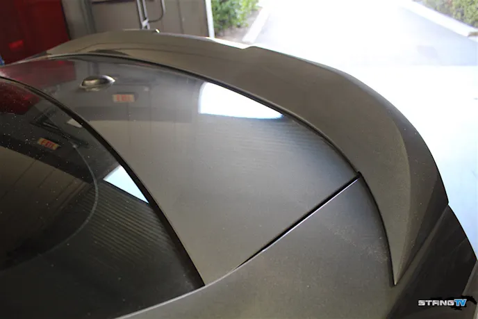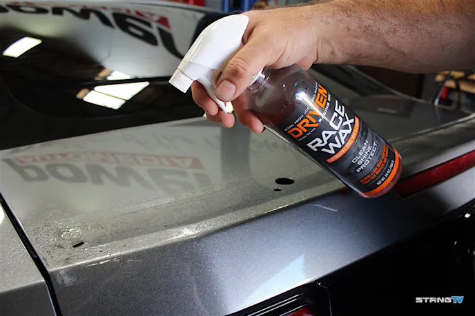 After removing the pins, we removed the four nuts holding the spoiler to the trunk. Once the spoiler was removed, we use some rubbing compound (or quick wax like our Driven Racing Oil Racing Wax) to remove any dirt or debris.