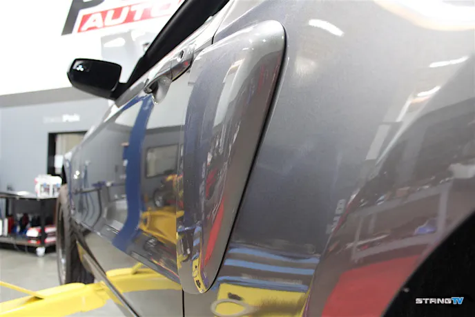 Since the silhouette of the ’05-’14 S197 generation Mustang is one of our favorites, we wanted to ensure the exterior changes we were making were not permanent in anyway; as we want to accentuate the shape of our ’13 Mustang GT in this case. We decided to opt for the pre-painted MMD quarter window louvers (PN 387389-J4), MMD side scoops (PN 387390-J4), and MMD rear spoiler (PN 390737-J4).