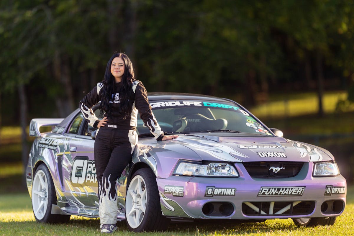 Besides slaying tires in her New Edge Mustang drifter, you can see Morgan appear in the CJPP Mustang videos online and at events across the country.