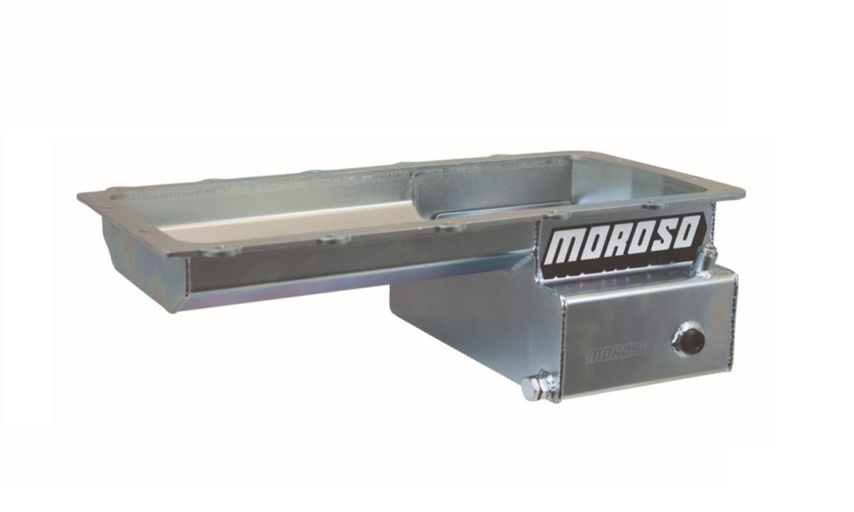 Moroso introduces a Ford 5.0 “Coyote” 6-1/4″ deep front sump steel oil pan Part No. 20573 for early Ford Chassis that require a front sump oil pan. Features a trap door baffle assembly, anti-climb baffle and anti-slosh baffle to keep oil contained in the oil pump pickup area during road racing and drag racing. Oil Pan has a thick steel rail with a fabricated steel sump with a 7 quart capacity. Designed to be used with the 5.0 “Coyote” factory windage tray and dipstick. Includes 1⁄2″ NPT fitting for oil temperature sender. Also includes 20 mm fitting for a factory oil level sensor.