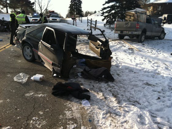 This has to be one of the most horrific crashes we’ve seen involving a street-going Mustang in quite some time. Medina County, OH was the scene this morning, where two people were hurt in a two-car crash.