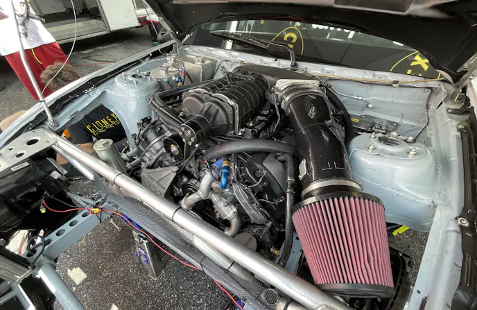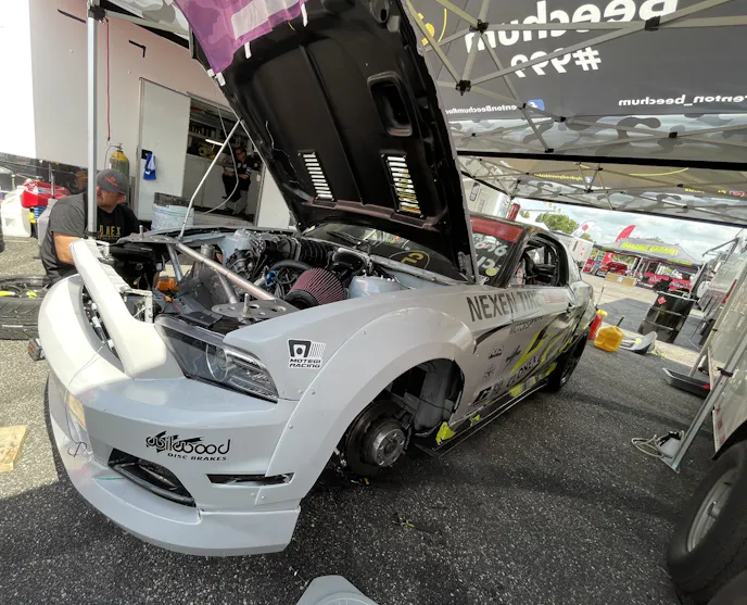 That it did, but for Justin Pawlak, a.k.a. JTP, things started strong but ended in a trail of Lucas Oil in competition. With a new, TVS-supercharged Coyote setup under the hood of his Falken Tire Ford Mustang Justin used an aggressive style to qualify in the second spot. In competition, he powered past Kyle Mohan, Dan Burkett, and Dean Kearney before falling to eventual runner-up, Fredric Aasbo. However, during that run the engine gave way leaving a trail of oil, rods and piston oil squirters on the track. “…As soon as I entered, I knew it was blown up, but it was still making power,” he confessed. JTP opted to keep his foot to the floor and complete the run, but he lost the round.