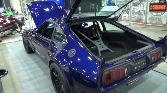 We previewed this car, and it’s build back in April of last year. The project itself is a massive undertaking, nothing on the car is untouched with perhaps the exception of the roof. The car rides on a custom tube chassis. The fenders have been widened, including incorporating part of a 2004 Mustang rear quarter panel into the rear to flare the wheel opening and provide adequate coverage for the rear tires.