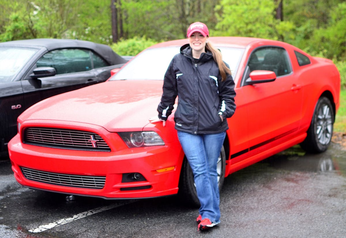 Jessica Adamson is one of the troopers that came out in the rain with her Race Red 2013 Mustang Club of America Edition V6. Jessica named her car Marilyn after Marilyn Monroe because they’re both beautiful American icons.