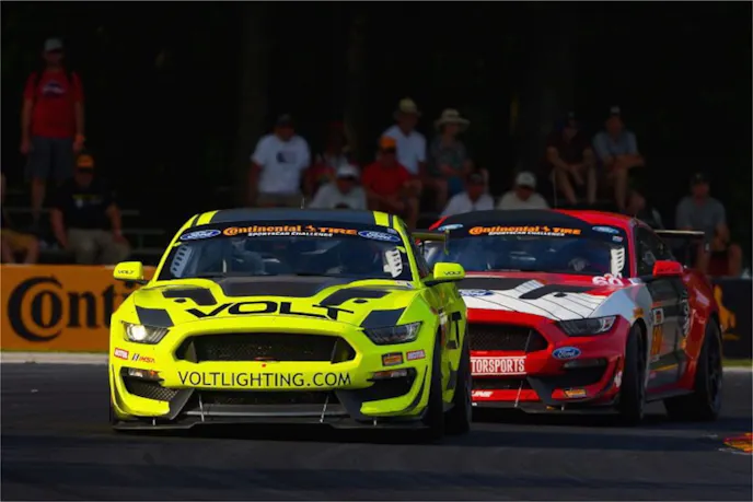 A variety of Mustang GT4s have earned victories this season in the IMSA Continental Tire SportsCar Challenge. At Road America Trent Hindman and Alan Brynjolfsson added their racer to the list, bringing home the first win for the VOLT Racing #7 car.