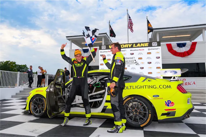 A variety of Mustang GT4s have earned victories this season in the IMSA Continental Tire SportsCar Challenge. At Road America Trent Hindman and Alan Brynjolfsson added their racer to the list, bringing home the first win for the VOLT Racing #7 car.
