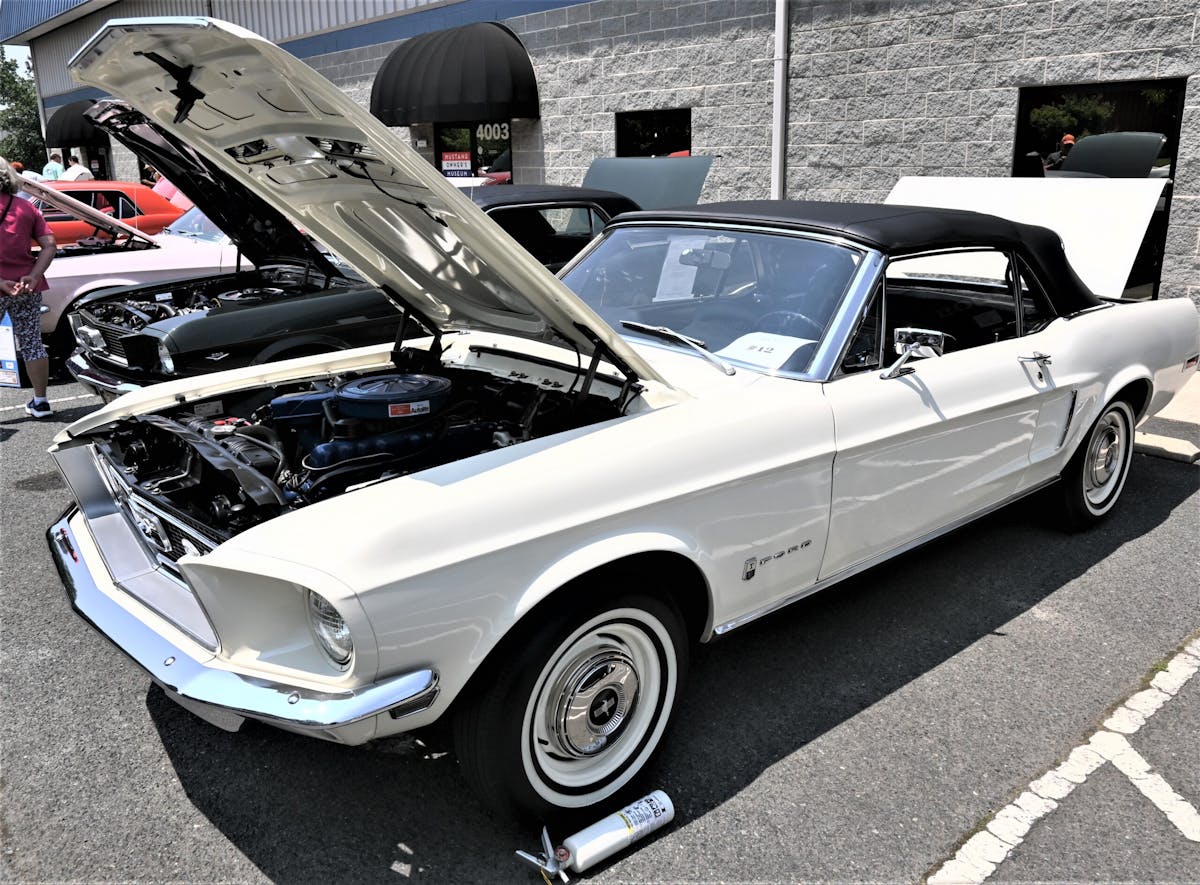 Now, back to the car show – what a great assortment of Mustangs! Dan and Barbara Kager showcased their yellow ’65 convertible GT, while another attendee had an original white ’66 K-code with a powerful 289 cubuc-inch high-performance engine. There was also a striking green ’69 MACH I with a 428 Super Cobra JET DRAG Pack, boasting an impressive 86,168 original miles. Additionally, a white ’67 hardtop caught our attention. This particular vehicle was built in Dearborn and sold at Fred Jones Ford in Oklahoma City, Oklahoma. It featured a Sprint Pack and a 289 cubic-inch engine with a 2-barrel carburetor.