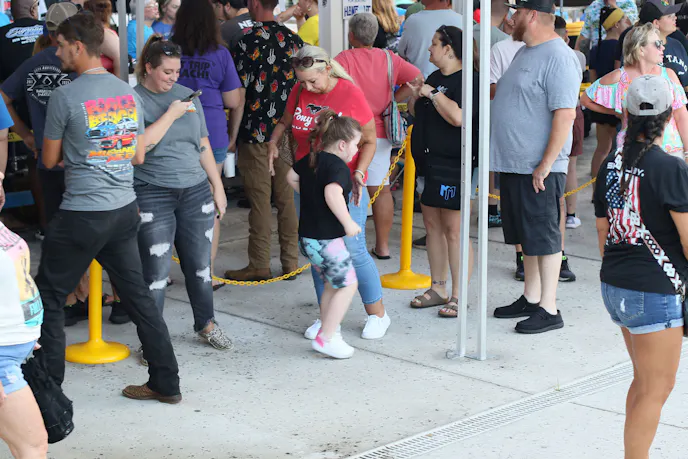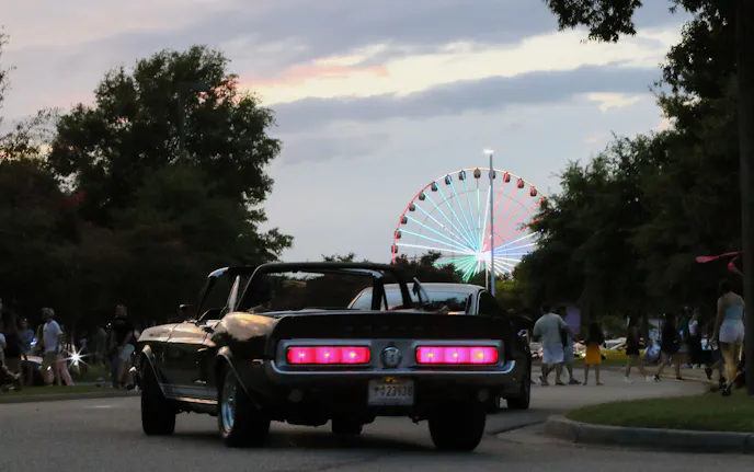 At 4pm the lines opened up for event-goers to pick up pre-order merchandise, VIP packages (new for this year), car show registration packets, fresh Mustang Week 2024 event t-shirts and more while a DJ spun some bangers (as the kids say) at The Hangout. If you aren’t familiar, The Hangout is located next to Broadway at the Beach – close to downtown Myrtle Beach. It is a very popular spot with families because there games, live music, full bar, and lots of family-friendly fun. In fact, they have another location in Gulf Shores, AL that uses a similar formula. And it is surrounded by shops, other restaurants, mini-golf, and more.