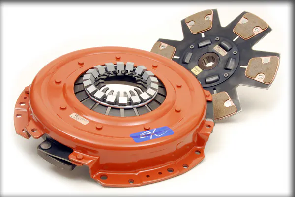 The Centerforce Dual Friction pressure plates feature our patented processes to provide a performance clutch that offers exceptional street characteristics, while offering outstanding holding-capacity and durability. The Dual-Friction disc has a full facing on the pressure plate side for drivability and longevity, while a carbon composite puc style (segmented) facing is used on the flywheel side for a positive engagement and increased holding-capacity.  Dual Friction is the ultimate in street/strip holding power and performance without sacrificing pedal effort and driver control.