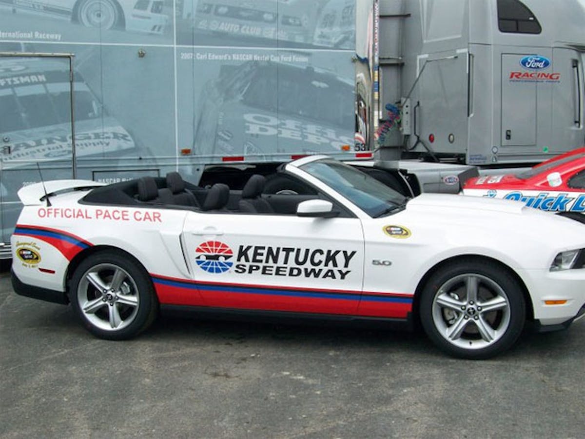 All of the special edition Mustang GT 5.0 convertibles are white, with feature unique badging that includes the Official Pace Car designation, NASCAR and Kentucky Speedway logos. Each unit will be numbered for collectible purposes.