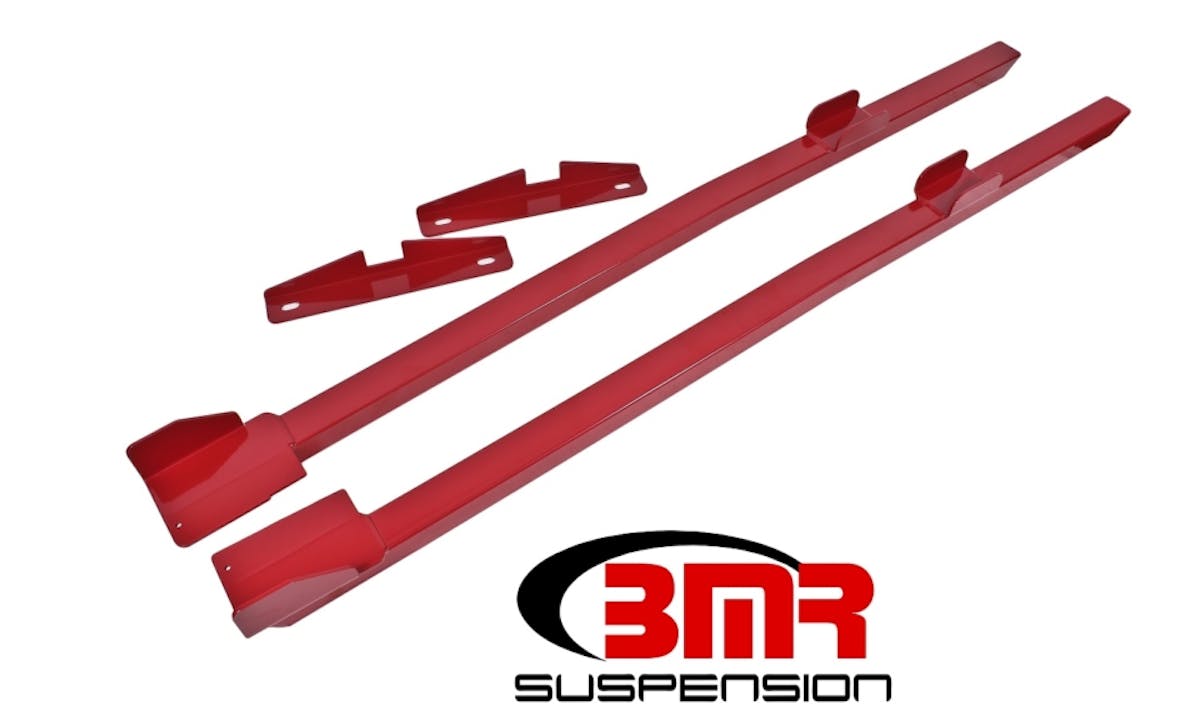 Reduce chassis flex and improve handling on your 1994-2004 Mustang with weld-on full-length sub-frame connectors from BMR Suspension. Since the Fox, SN95, and New Edge chassis are not a full frame, the chassis flexes dramatically even with mild amounts of torque and horsepower. Manufactured from a mix of 1.5- x 2-inch steel tubing and laser-cut CNC-formed 3/16-inch steel plate, these sub-frame connectors add loads of strength in all the right places. The BMR Weld-On Sub-Frame Connectors (SFC025) solidly link the front and rear sub-frames of your Mustang, and tie into the rear section of the front seat mounts. BMR has designed the SFC025 for street performance, drag race, and handling applications. The SFC025 is available in black hammertone and red powdercoat for long-lasting good looks. Installation time is about 2-3 hour. Proudly made in the U.S.A.