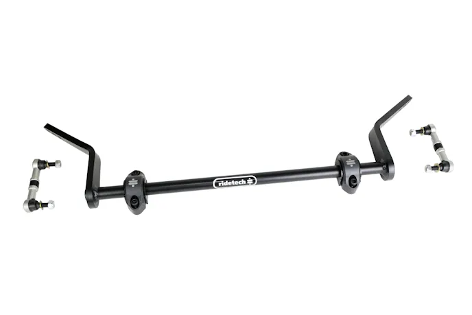 The kit features tubular upper and lower A-arm construction to maintain strength while reducing weight. Ridetech’s in-house designed hub spindles with a durable black e-coat finish are included, along with hubs for the bolt-on installation of OEM or SN95 brake packages.