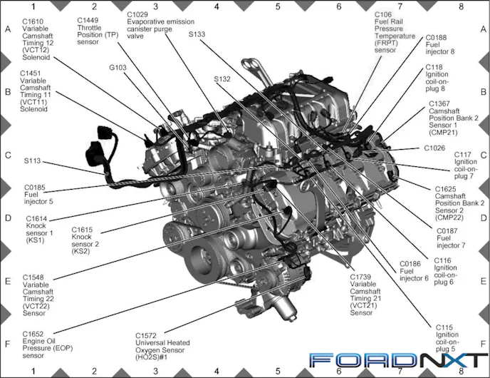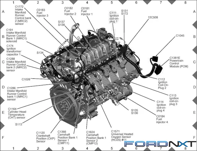 Posted on Ford’s Motorcraft Service website, two illustrations offer a full-frontal and -dorsal views of the supercharged 5.2-liter engine that we shared with you first here. While these images seem to show a Shelby GT350 wiring harness atop the forthcoming engine, the illustrations do reveal some interesting tidbits that may foretell some details of the next Shelby.