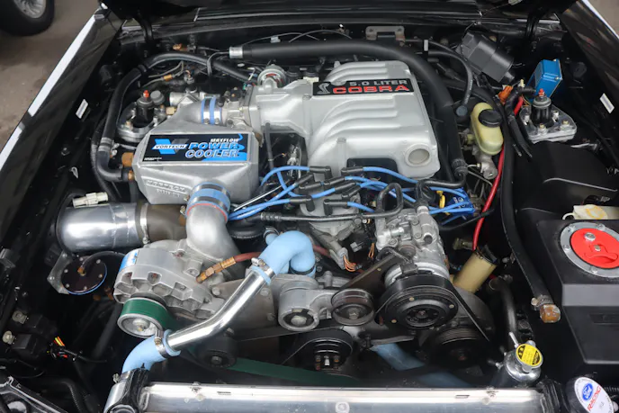 There were plenty of modded cars on the property and Coyote swaps were certainly en vogue. But this clean ’85 Mustang GT stood out. Not only was its black paint pristine and its stance just right, but it sported a unique pushrod combo underhood. With a single turbo feeding a carb-style EFI induction with a blow-through setup, Tommy Mederios’ powerplant was both familiar and different for a Fox build