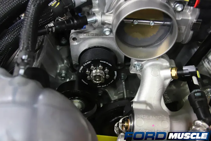 We sought out the skillful hand of Kong Performance to port our blower, but also decided to use their 108mm throttle body to optimize the incoming airflow. Since the stock unit was only 92mm, we were trying to eliminate any potential bottleneck in the system, and the throttle body inlet was second only to the stock intake.
