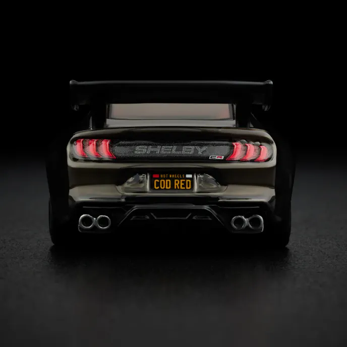 The detailed diecast sports signature Code Red accents and an eye-catching Spectraflame finish. It even has tinted windows and gloss-black five-spoke wheels. Its functional hood allows for showing off that four-digit, twin-turbo Predator engine lurking beneath, which sports the aforementioned twin-turbo system and more from Fathouse Performance, where the team was taken aback to see a car they helped bring to life become an iconic toy.
