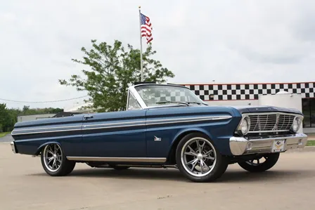 Keeping with his one-at-a-time mantra, Mike’s latest toy is a ’65 Falcon convertible. Powered by a 331-cube stroker, backed by a Toploader four-speed, this lightweight produces 435 horsepower. It was a total restoration.