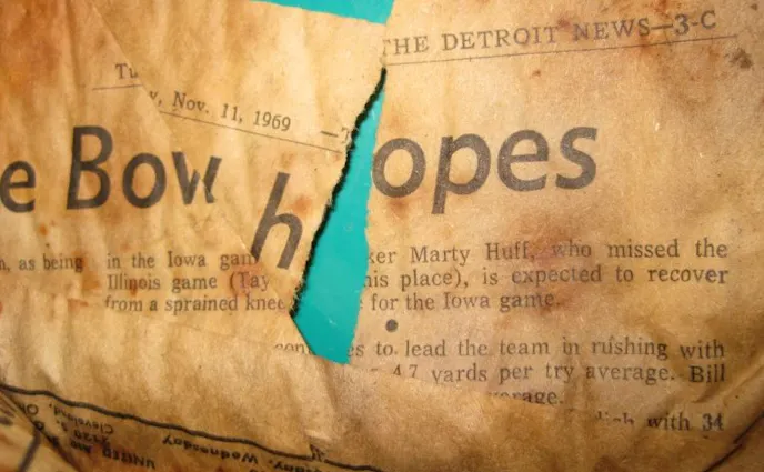 “I found a page out of The Detroit News dated Tuesday, November 11, 1969 under the carpet in the passenger footwell and a perfect copy of the original build sheet under the driver seat,” he explained.