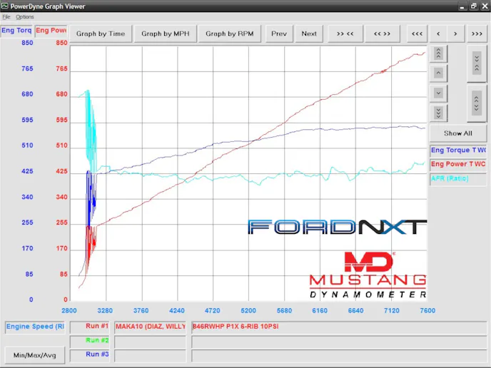 Obviously the ample fuel supply required some changes to the calibration as well, but what’s impressive is the new rear-wheel numbers were attained at the same 10-psi level as the previous gasoline-burning numbers, so there is likely still more on the table as the MAK crew keeps leaning on the latest Mustang.