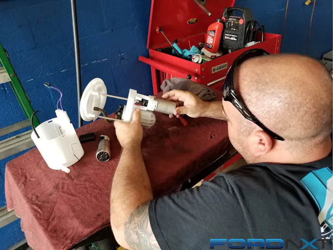 DeatschWerks DW400 fuel pump in MAK-modified factory fuel hat