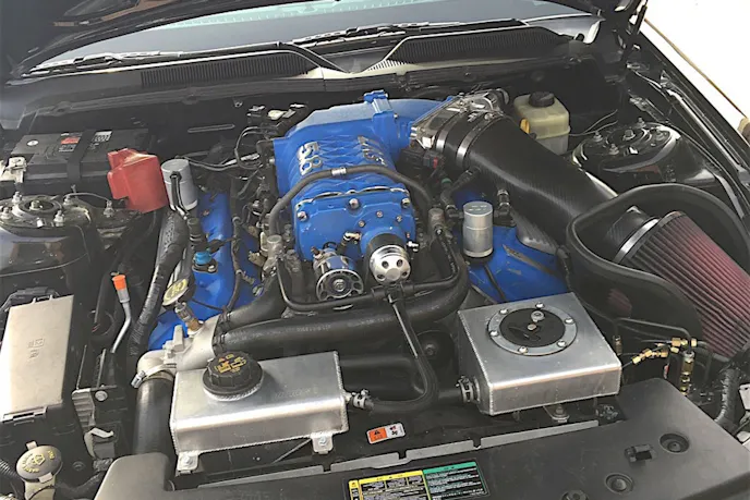 “At that time, I had no knowledge of how a GT500 and a ’05 GT would mate. I knew the engine would bolt-in, and that’s all I knew at that point. And the rest of it was just a ‘I’ll figure it out as I go’ plan, and that’s what I did. It was fun. I enjoy doing this; that’s what makes my mind tick. I’m not gonna lie, it was stressful. At the same time, whatever I got myself into, all the wiring has to be completely changed out of the car. But it worked out, and I’m more than happy. It was a pretty cool deal.”