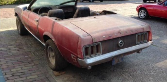 In any event, the current owner, who has owned it for 27 years, doesn’t have time for the project, so someone could score a really rare Mustang. It even has an active Dutch license plate, even though it’s clearly not driveable.
