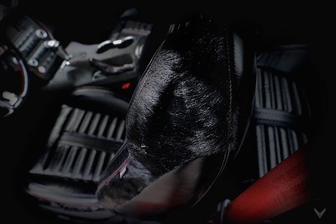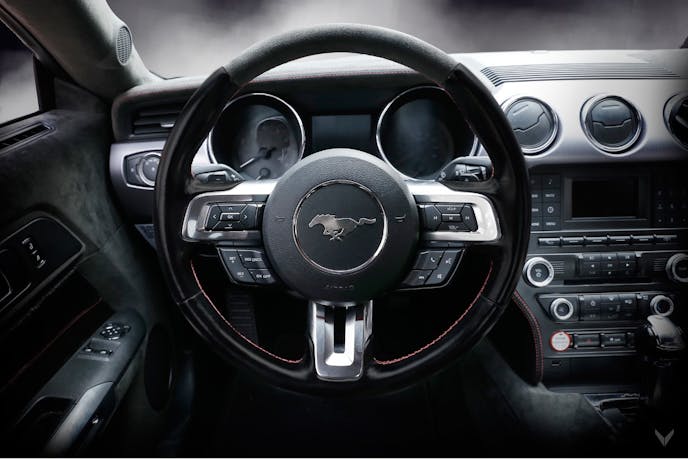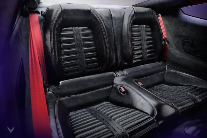 So, the company set out to completely revamp the red ’Stang’s cabin with a mixture of Alcantara, horse hide, and red stitching to match the car’s paint.