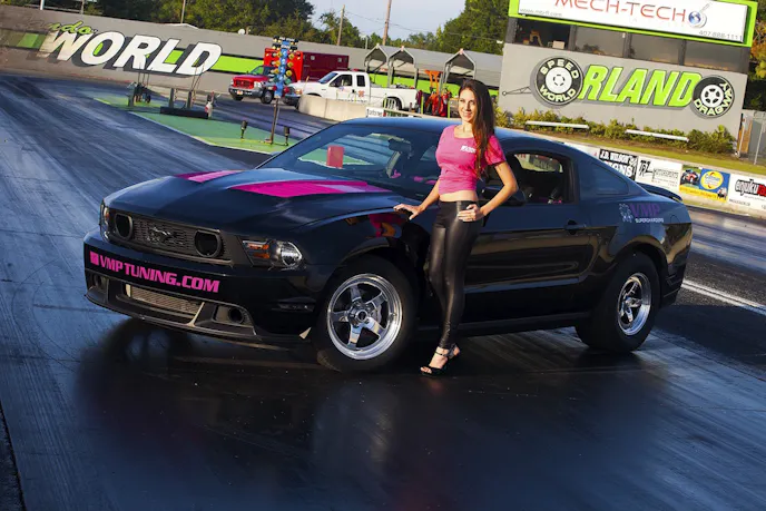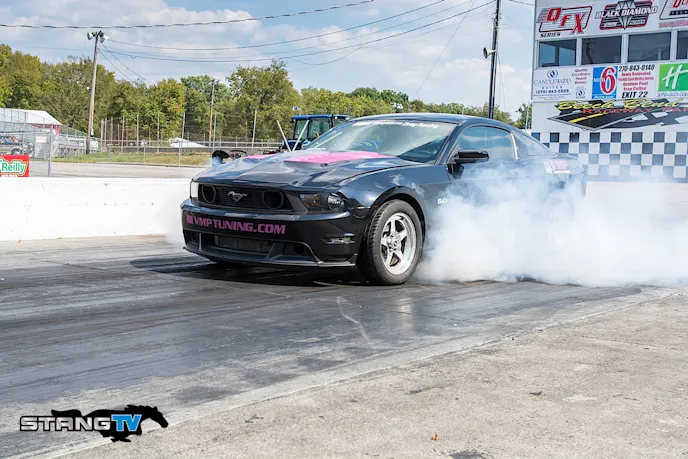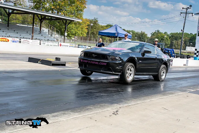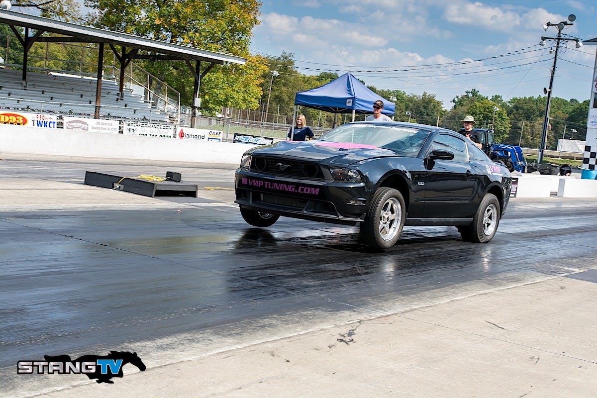 The black 2011 Mustang GT that Rebecca pilots has become well known in the Mustang community. Serving as the test bed for VMP, you could easily say that this car was pivotal in the Coyote performance movement. Rebecca has piloted the car in-between degrees and pregnancies from stock to some major milestones. With her behind the wheel this car was one of the first to eclipse the 10s and then then 9s, all while Rebecca was driving it to the track with two car seats in the back, and loaded up with a diaper bag and stroller.