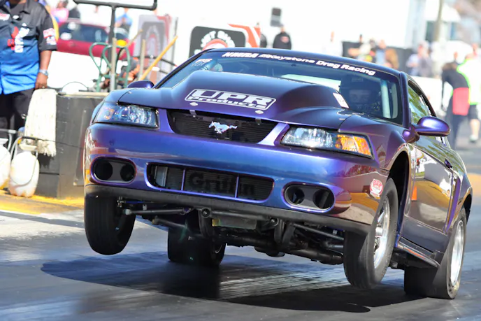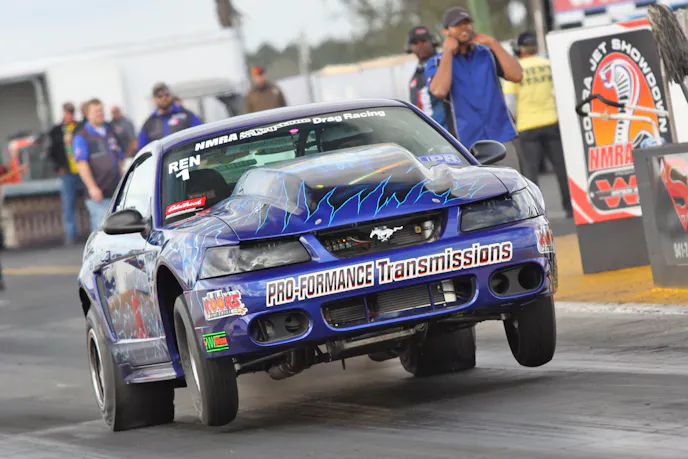 The NMRA decided to bring back their limited-modification, naturally-aspirated ACT Pure Street class for the 2014 season after a one-year hiatus. Six competitors showed up, highlighted by the 2001 Mustang owned by Virginia’s Teddy Weaver. Over the offseason, Weaver enlisted Ron Sharp at Roush Competition Engines to go through his engine, which had last been touched by the Roush team in 2009. New pistons featuring the newly-legal gas porting were installed, which Weaver credits as the largest improvement the team found in the engine’s performance. He went out and proceeded to crush the number, running an awesome 9.67 at only 133.98 MPH to take the top qualifying spot over Scott Barker’s Modular-powered ’97 Cobra.