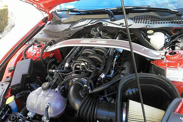 Ford has been keeping the under hood details of the soon to be released 2016 GT350 under wraps. Recently three images of a GT350 prototype surfaced on facebook, giving us our first full glimpse under the hood. This looks like a near production version of the GT350, which reveals several details that we had yet to see.