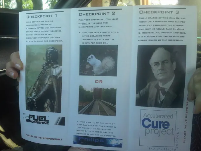 Rt 50 to keep heading west while they searched for checkpoint 6. Thanks to some help from Facebook friends they found the location but only to realize they had already passed by the turn off and would have to go back 30 miles to get there. They knew that would kill any chance of them placing and were bummed for a little bit. But then realized much how nicer it was to relax instead of running in and out of gas stations like crazy people!
