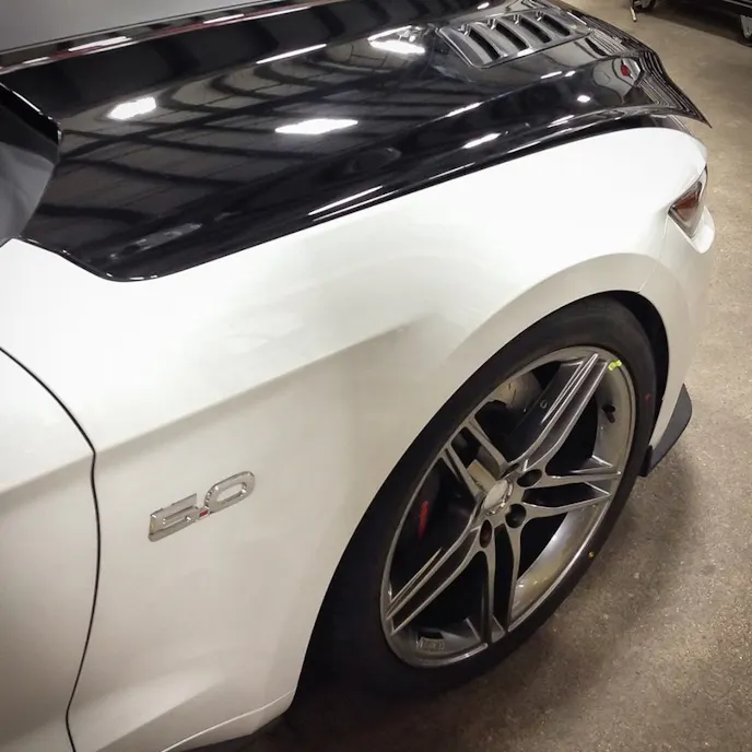 Recently ROUSH made good on that promise with three more images. The first shows part of the hood and the front fender on a S550 at ROUSH headquarters. In the photo the first thing that stands out is the hood vent. This appears to be a different design than the factory GT vent. It’s also unclear whether this is an entirely new hood or a modified version of the factory piece.