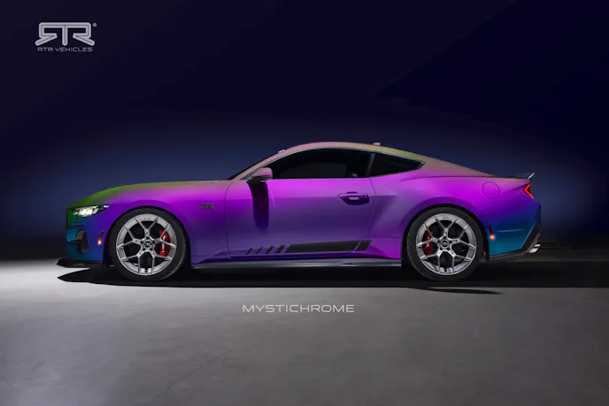 Developed to help celebrate the 40th Anniversary of the Mustang, Mystichrome was only sprayed on 1,010 2004 SVT Mustang Cobras, which are among the most sought-after machines built by Ford’s now-defunct Special Vehicle Team. However, the crew at RTR Vehicles loves to push the envelope, and they worked with PPG Automotive Paint and Finishes to bring it back as an option for the 2024 model year.