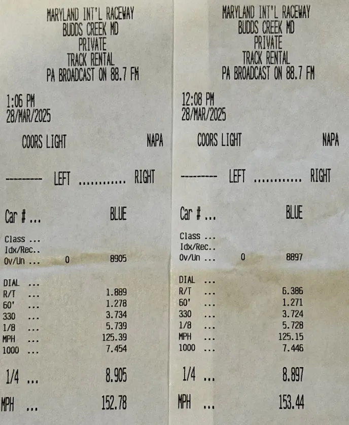 In testing before Ortiz took the car home, it clicked off an impressive 8.89 at 153 mph on the merits of a 1.27 60-foot time, and nearly repeated that run with a follow-up 8.90-second rip.