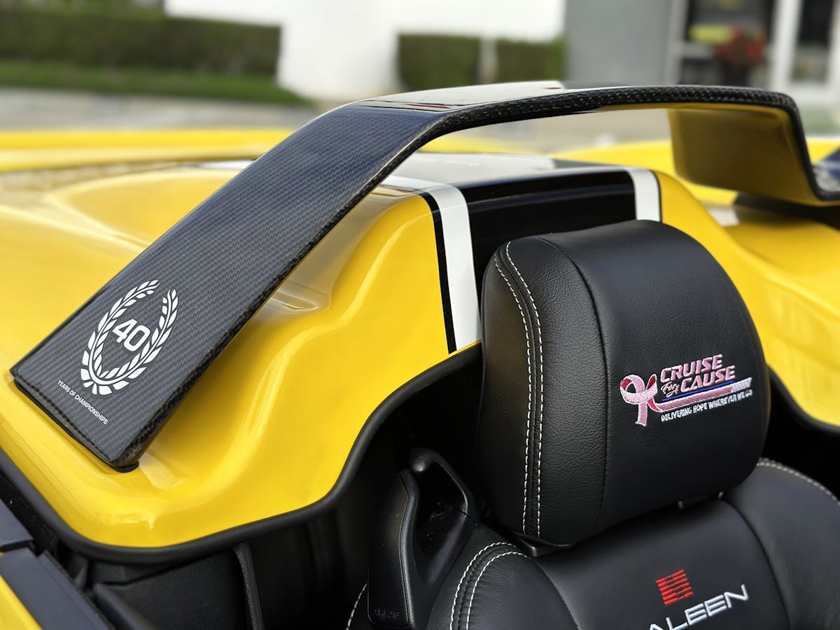 The SA-40 Edition will be limited to only 10 units and be finished in Speedlab Yellow. The car will feature black and white accents throughout the 40th anniversary interior with an all-new Saleen designed tonneau cover with carbon-fiber hoops. The SA-40 Speedster shares the same genetics as the Saleen 302 Black Label convertible which hosts 800 ponies under the hood. The SA-40 package extends past the aesthetics and includes SA-40 exclusive wheels, Racecraft suspension, and Saleen brakes.
