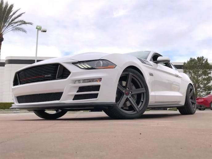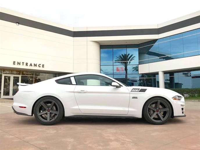 That styling includes a unique front fascia with functional air ducts, an open grille, and a Saleen downforce wing. These cars ride on signature Saleen wheels wrapped in Continental ZR-rated tires and feature numerous suspension upgrades, including performance dampers, springs, sway bars.