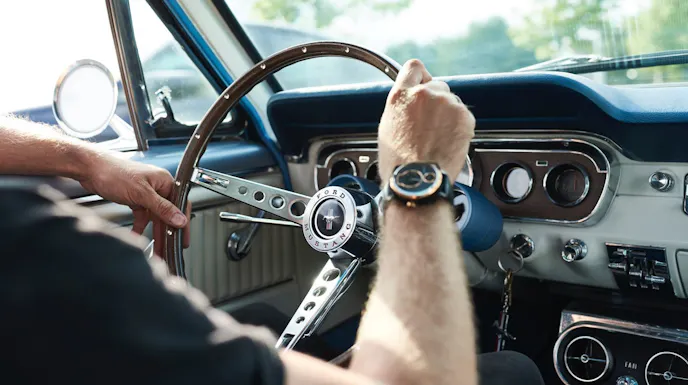REC conducts fastidious research on the vehicles it sources for each watch series and incorporates details like the vehicle identification number and year of production into the timepiece. For these watches they even added Mustang styling cues like a battery-life indication reminiscent of a Mustang fuel gauge and number typography inspired by the Mustang dashboard.