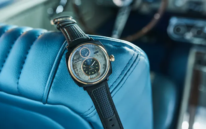 REC conducts fastidious research on the vehicles it sources for each watch series and incorporates details like the vehicle identification number and year of production into the timepiece. For these watches they even added Mustang styling cues like a battery-life indication reminiscent of a Mustang fuel gauge and number typography inspired by the Mustang dashboard.