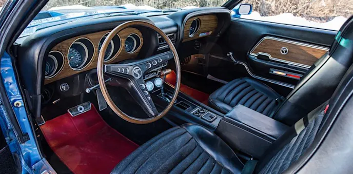 And here we are, full circle with this 1969 Shelby GT500 brought to us by Mecum Auctions. Finished in Acapulco Blue, it was sold new at Frontier Ford in Rockford, Illinois, in 1969 and only wears a handful of factory options. For starters, the aforementioned 428 CJ is paired to a C6 Cruise-O-Matic automatic transmission. Inside the cabin of this Mustang, you’ll be greeted with a charcoal interior with factory AM radio and air conditioning, deluxe belts and warning light.