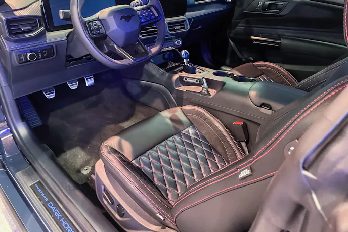 This Dark Horse Mustang boasts an impressive array of features, making it a standout among new 2024 Mustangs on the road. The car flaunts a gorgeous Blue Ember Metallic paint job, a powerful 500 horsepower engine, and a custom MagnaFlow exhaust.