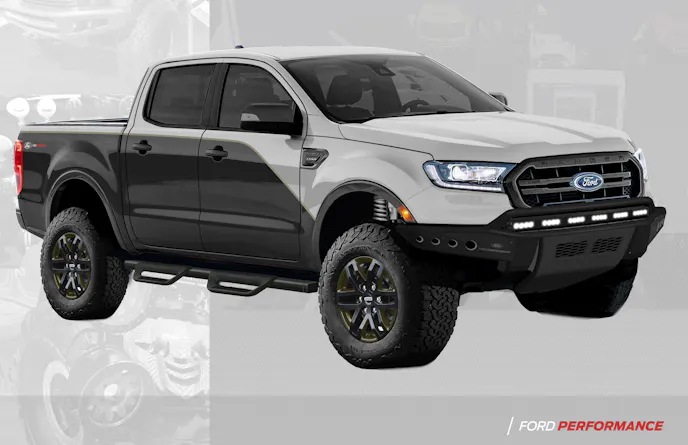 Ford’s in-house performance parts division put together its own 2019 Ranger Lariat 4×4 SuperCrew with a pre-runner theme. Powered by a turbo four-cylinder backed by a 10-speed automatic, this off-road-package truck received a bed-full of upgrades designed to make it even more capable in the rugged terrain.