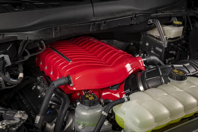 Not limited to the base truck, Shelby also offers a Baja upgrade for the Raptor R powered by a supercharged, 5.2-liter engine that cranks out 720 horsepower in factory form. This post-title package pumps up the power beyond 900 horsepower with a Borla exhaust and a 3.8-liter Whipple supercharger.