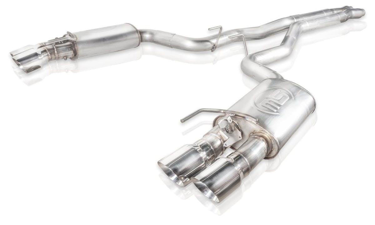 Upgrade your 2018 Mustang GT today with our Redline exhaust from Stainless Works. The Redline series is designed to maximize the volume and tone of your GT while eliminating any drone in the cabin. It’s our most aggressive system for the 18 Mustang GT. We’ve improved the flow and sound over the stock system by utilizing 3” mandrel bent tubing and tuned mufflers to utilize the modes available on the active valve controllers. Our in-house designed and built valves bolt directly to the electronic controllers provided by Ford and retain the exhaust modes for all types of driving. The result is a thrilling drive in track and a subtle growl in normal mode. Place your order today to be the first at the track with this killer exhaust system from Stainless Works.
