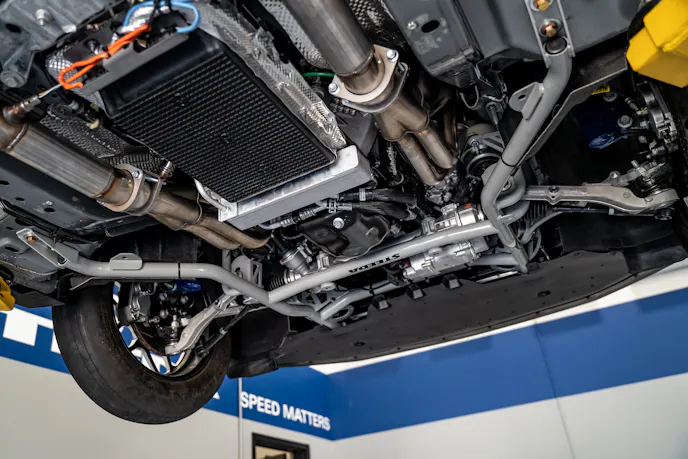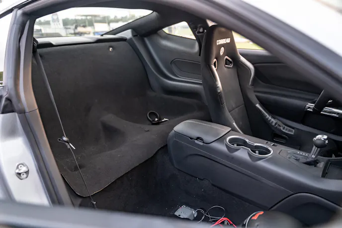 “It’s very different. With the previous 2018 the first thing we did was cold air intake, tune, and E85.  We couldn’t do any of those with the new car,” Steeda’s Director of Engineering and Manufacturing, Scott Boda explains. “So, we really had to go into our NA bag of tricks and start immediately with weight reduction and maximum traction. There are only three ways to go faster, horsepower, weight, and traction.”