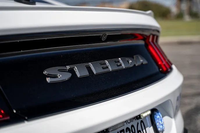 Steeda took a base model 2021 Mustang GT and added a host of parts to make this Mustang more performance than patrol. Upgrading the engine’s performance was done through an AWE Tuning Touring Edition Cat-Back exhaust with quad black diamond tips and a Steeda MaxFlow open cold air intake. To make sure the engine was calibrated for these performance upgrades, an SCT X4 Tuner was used in conjunction with a Steeda-certified tune for the 5.0-liter Coyote engine.