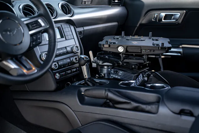 When the chase turns from open highways to twisty back roads, the Steeda suspension clocks in for work. The crew at Steeda installed its own suspension setup, including adjustable front and rear sway bar kit, IRS subframe bushing support system, IRS subframe alignment kit, IRS subframe support braces, and topped it off with a Steeda Performance wheel alignment. The base model Mustang GT came with 235-series tires in the rear, which were far from adequate for any high-performance driving. After tossing the base wheels, a set of McQueen Racing Mulholland gloss black staggered street wheels package with Nitto INVO ultra-high performance tires were installed. The Mustang now sits on a wider contact patch with 275/35/20 front tires and massive 315/35-20 rear rubbers.