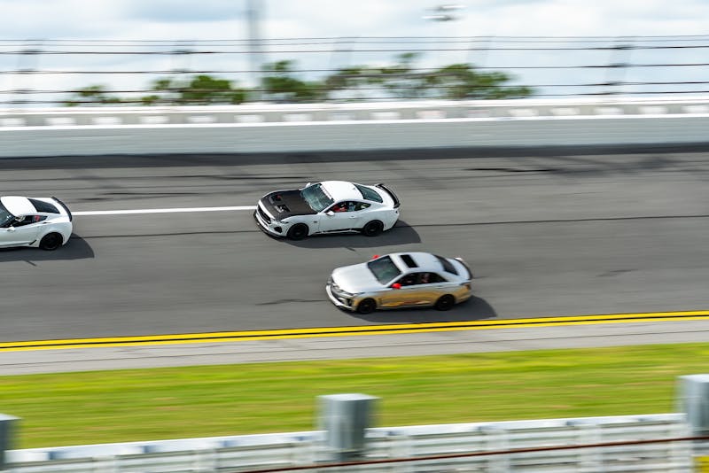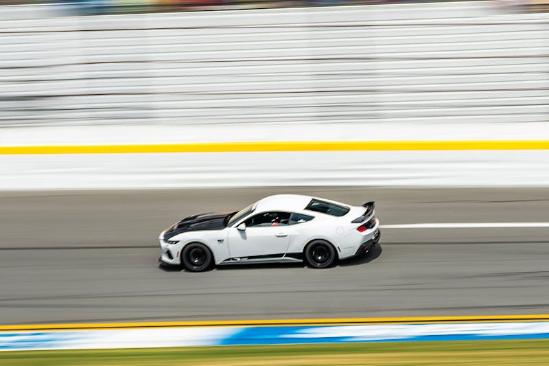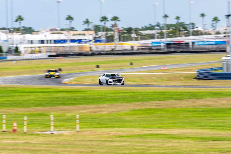 Of course, Daytona isn’t just about horsepower. Carrying speed through the bus stop chicane and onto the banking requires precision, grip, and nerves. That’s where the Toyo Proxes R DOT slicks, mounted on 18×11-inch Apex wheels, combined with Steeda’s Brembo brake upgrade kit, shone brightly. The lighter wheel and tire package and suspension upgrades allowed the Q500 to stay balanced and predictable when the speeds climbed deep into the triple digits.